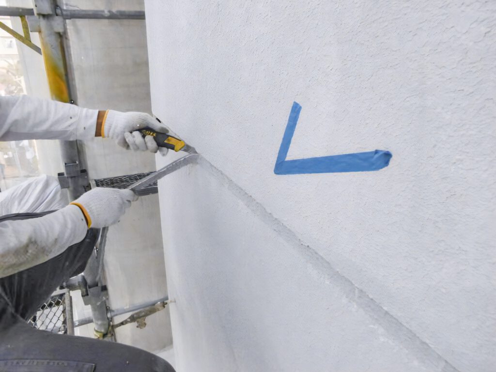 外壁のすき間を埋めて、防水性を確保。